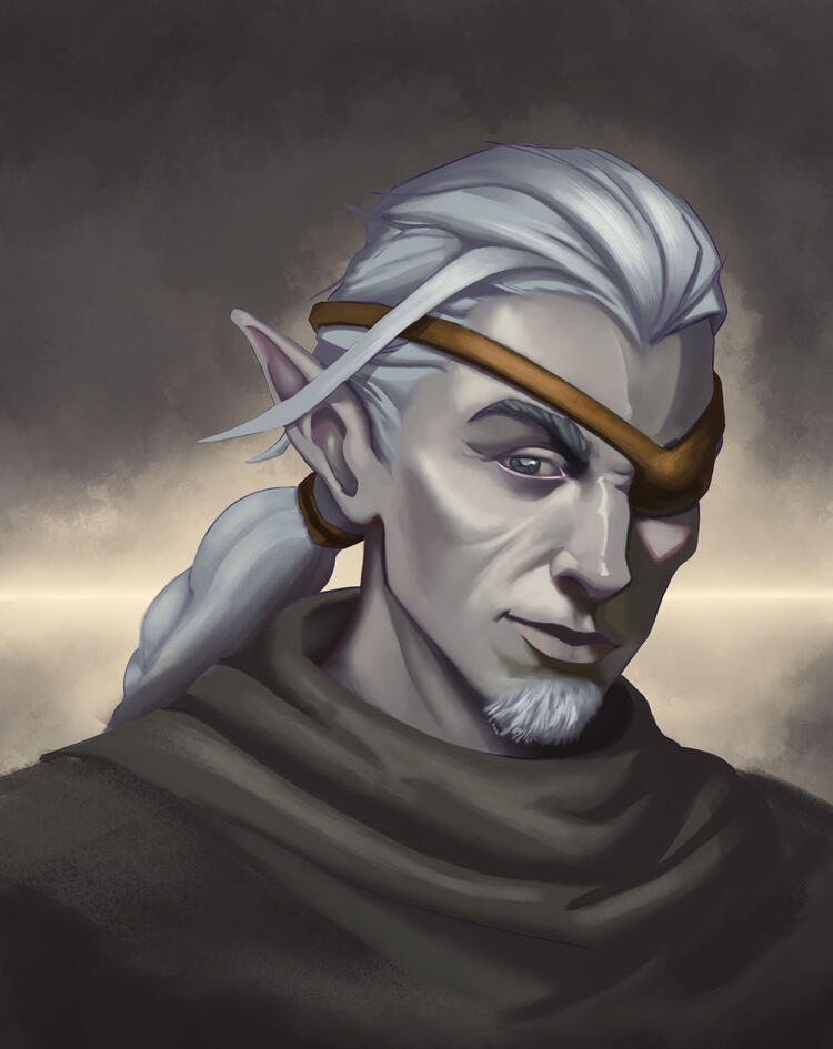High-quality character render with a simple or abstract background (vignette style) to frame the figure.